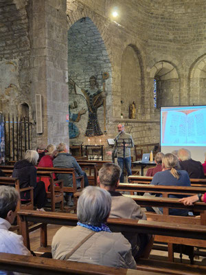 Avant la soirée organisée par l’association Culture et loisirs, l’après-midi culturel se prolongera, dès 17 h, en l’église Notre-Dame du Gourg, ce samedi 4 octobre, par une conférence sur « Les monnaies mérovingiennes locales » animée par Muriel ANGIELLA SCOT, historienne. Elle se prolongera, toujours à l’église, par un 2ème concert, toujours inscrit dans le cadre de la 20ème édition du festival « Les Troubadours chantent l’art roman en Occitanie ». Cette fois, c’est autour de Gérard ZUCHETTO que chant, violoncelle, hautbois et cor anglais vont illustrer un récital en 4 langues : castillan, occitan, italien et français, intitulé Pescaires d’estelas. Encore une belle occasion de faire vibrer les voûtes romanes de Notre-Dame du Gourg, à partir de 18 h 15, tout en se laissant bercer per la lenga nòstra.